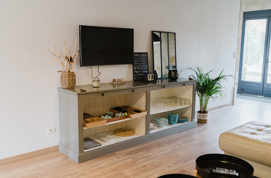 Le Gîte Conseillant has 4 bedrooms, a bathroom with shower and 2 WCs, a fully-equipped kitchen and a large living room with flat-screen TV.